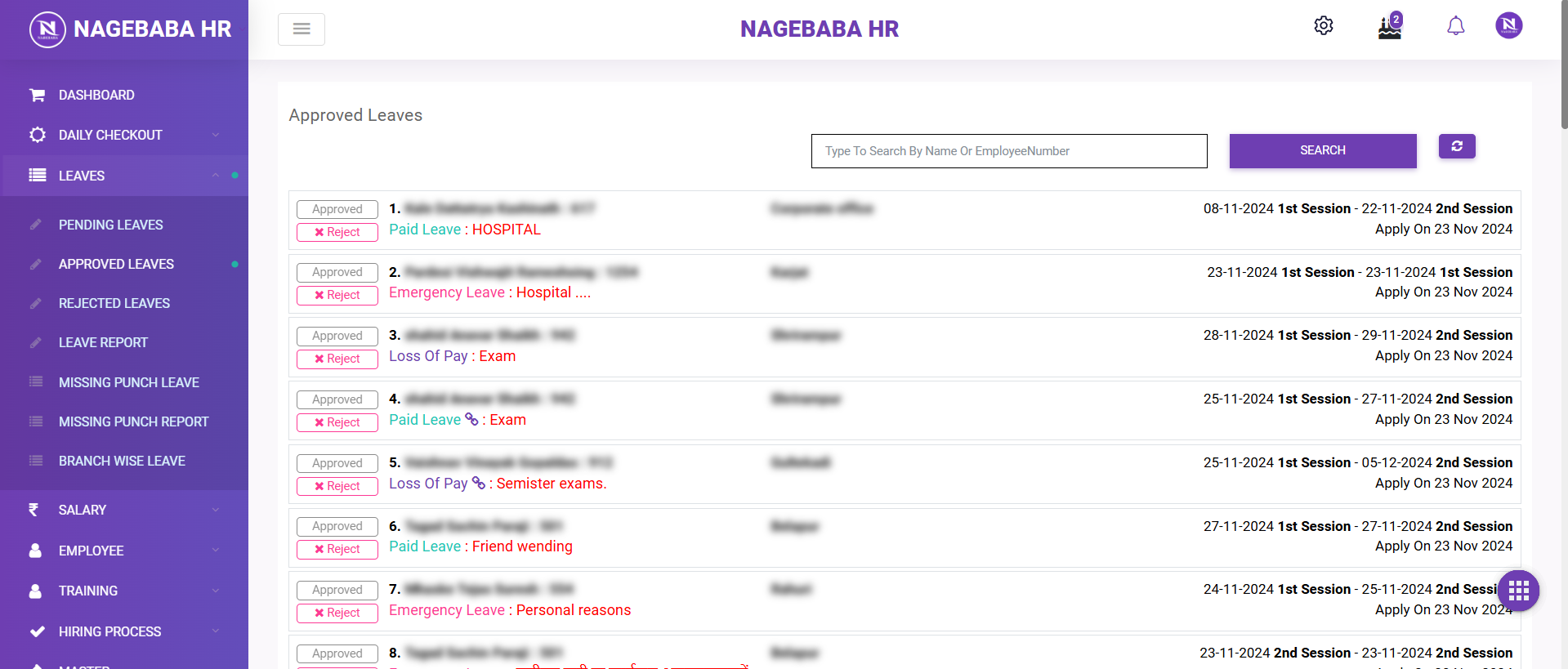 Managers can approve leaves and view team performance.