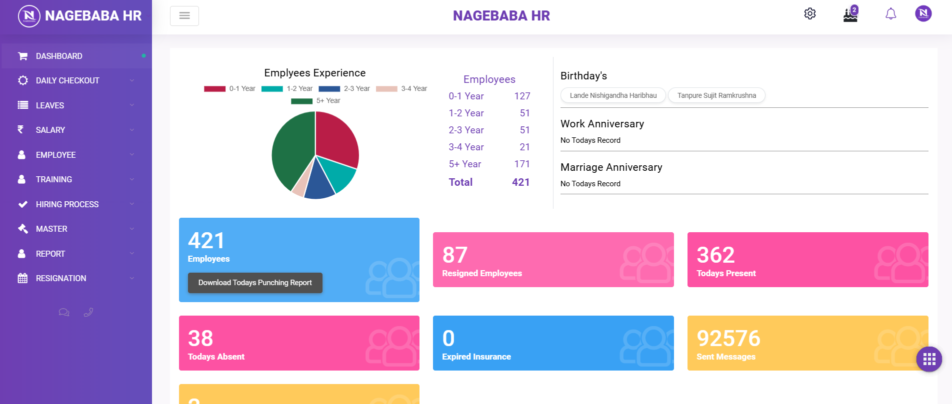 Alerts for upcoming appraisals, birthdays, and compliance deadlines.